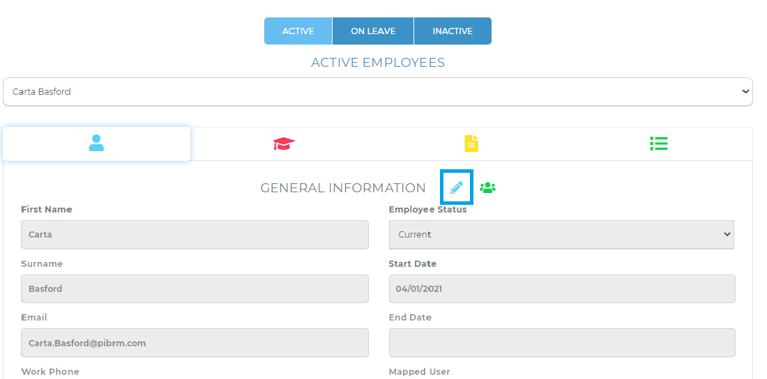 It will open a new page inside the employees module, select the dropdown box and select the employee you wish to edit