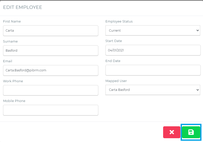 A pop up will appear, Fill out the relevant information and click The Green Save Icon