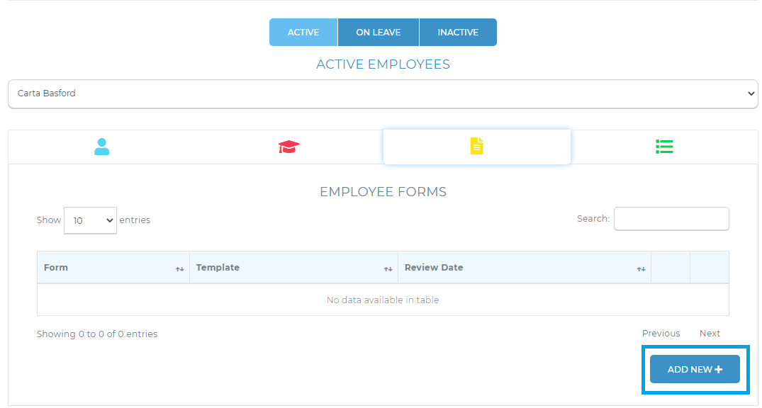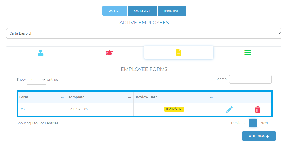 Once saved, you will be taken back to the employees forms section and you will see the new Form had been added.