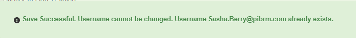 If you try changing a Username to a name which already exists on the system, a pop up will appear at the bottom of the screen and it will not save the User details.