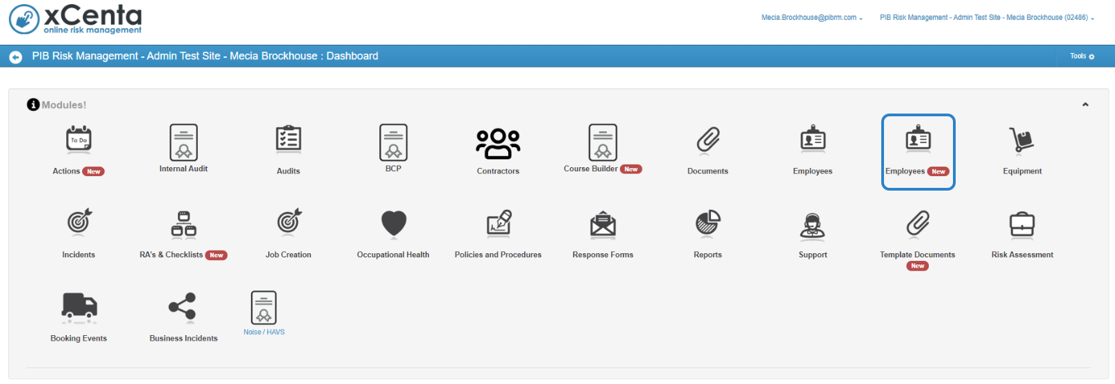From the xCenta Dashboard, click on the Employees New icon in the modules section.